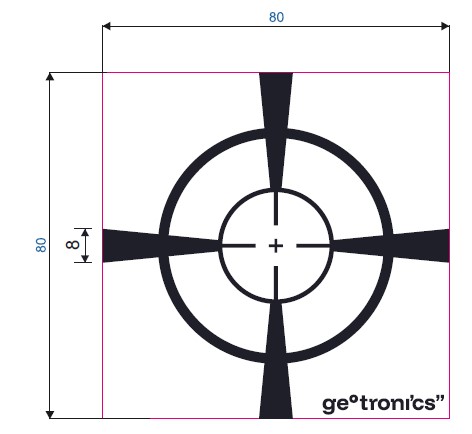Sada 10 ks bílých samolepicích odrazných štítků se zvýrazněným záměrným křížem o velikosti 8 x 8 cm.