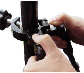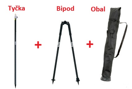 Praktická sada od firmy Myzox sestavené z teleskopické karbonové tyčky pod GNSS přijímač a hliníkového bipodu.